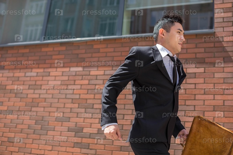 Молодой китаец бежит на работу