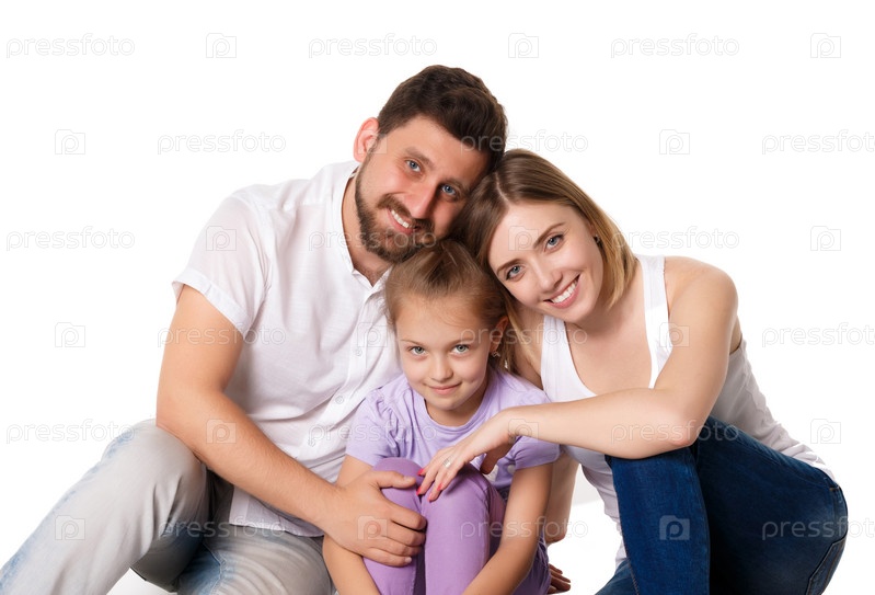 Счастливая семья на белом фоне