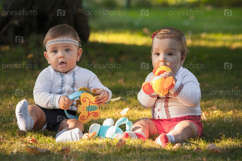 Маленькие детишки играют с игрушками