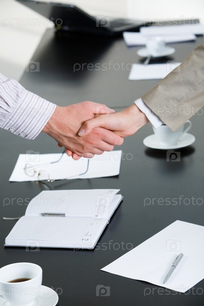 Изображение деловых людей, рукопожатых на рабочем месте