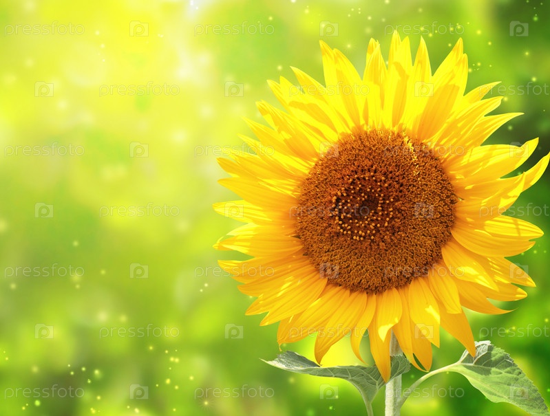 Ярко желтый подсолнух на зеленом фоне