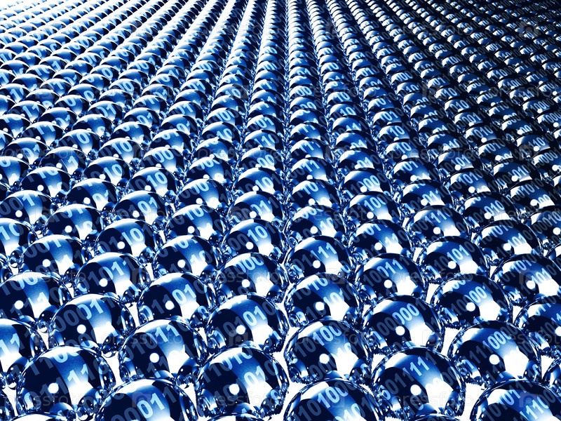 Абстрактный фон с хромированными шариками и кодом на них