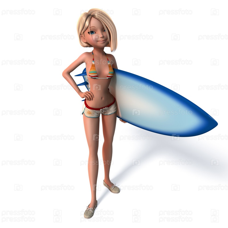 Молодая девушка с доской для серфинга