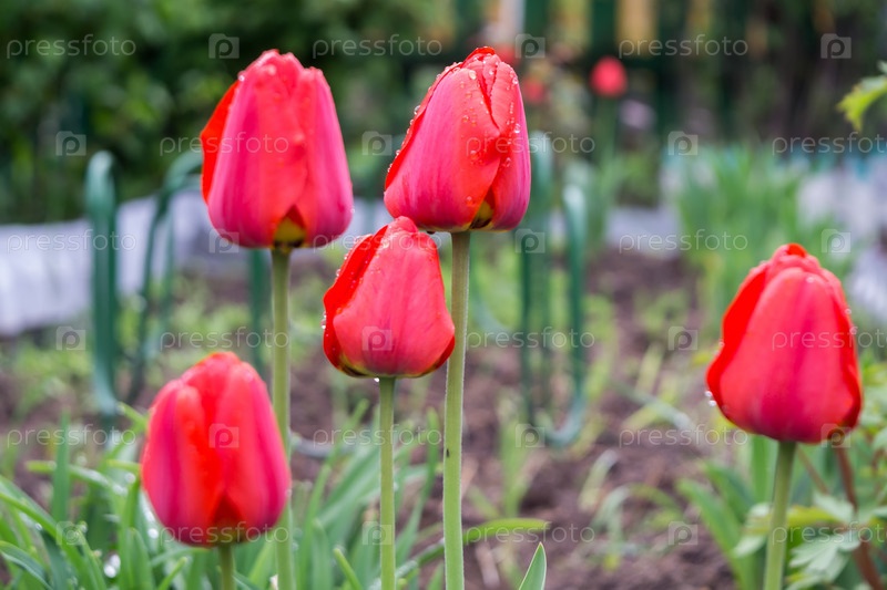 Красные тюльпаны в саду