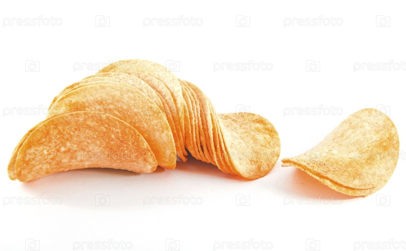 Картофельные чипсы на белом фоне