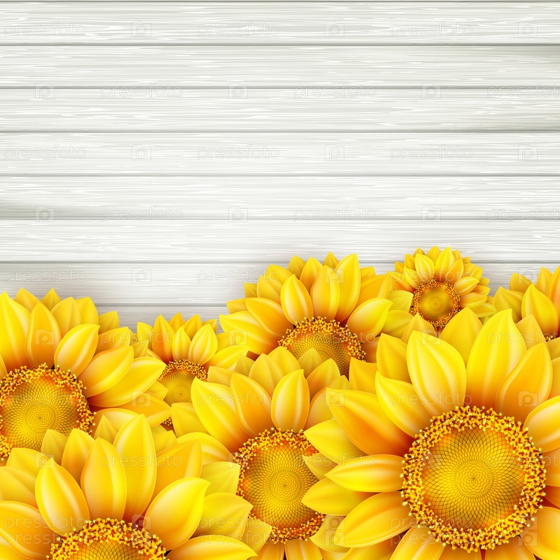 Подсолнухи на деревянных фоне