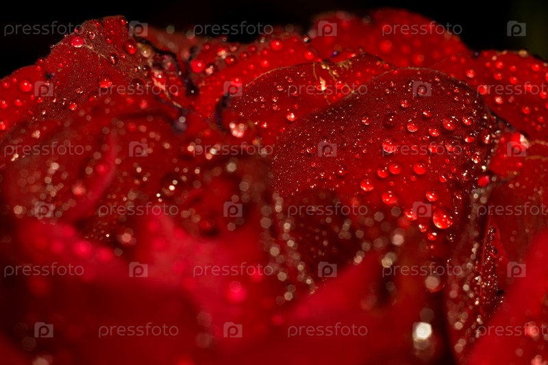 Мокрая красная роза макро