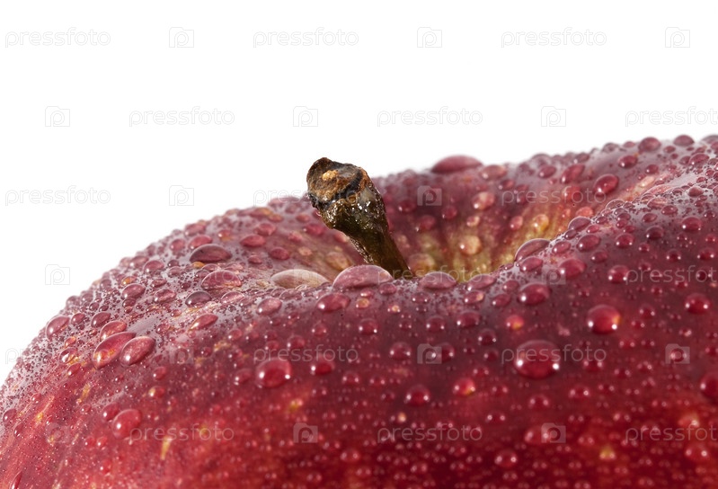 Красное яблоко с каплями воды крупным планом