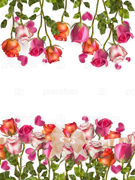 Розы и сердца в форме листьев. EPS 10