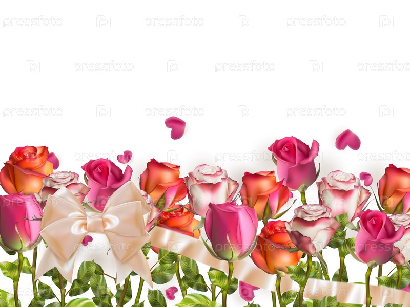 Розы и листья в форме сердца. EPS 10