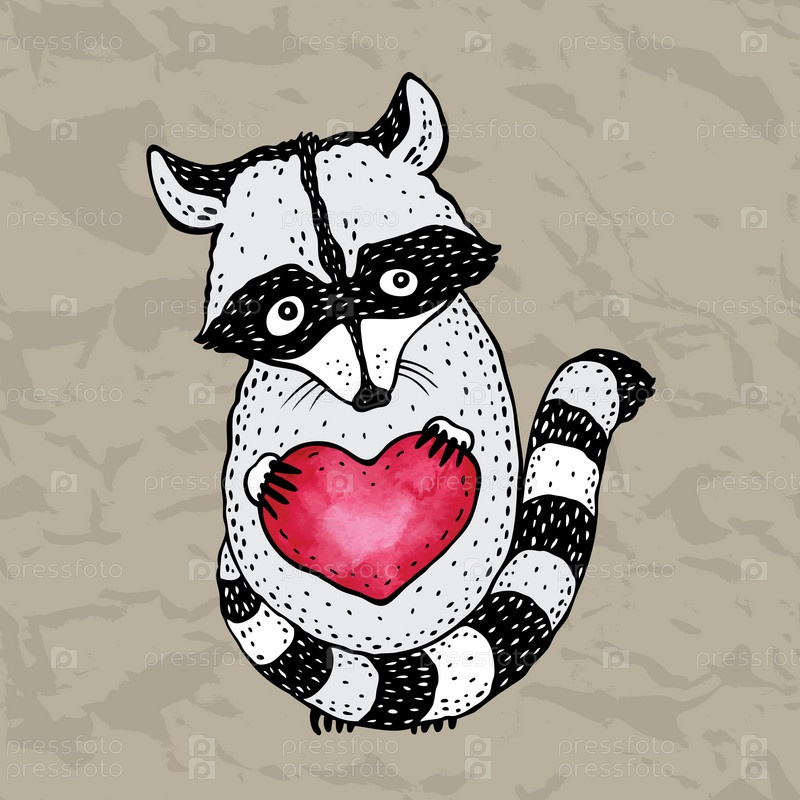 Милые енот с сердцем в руках
