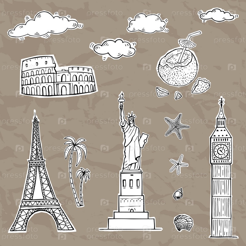 Коллекция наклеек путешествий и туризма