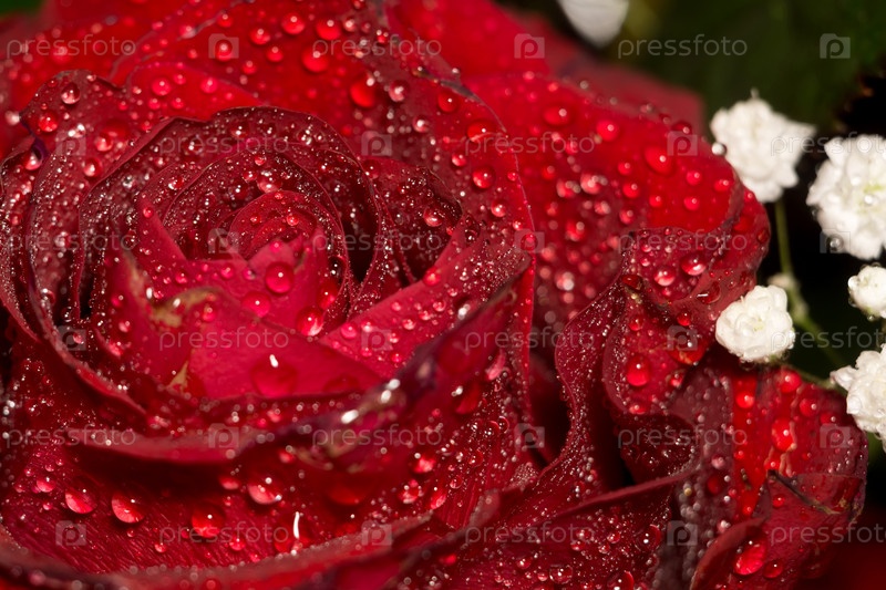 Мокрая красная роза макро