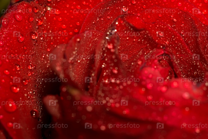 Мокрая красная роза макро