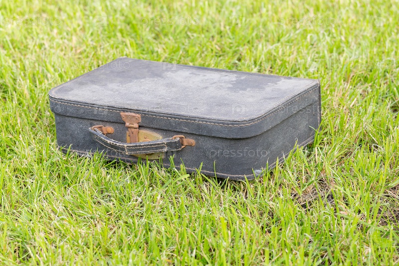 Старый чемодан на траве