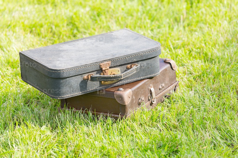 Старый чемодан на траве