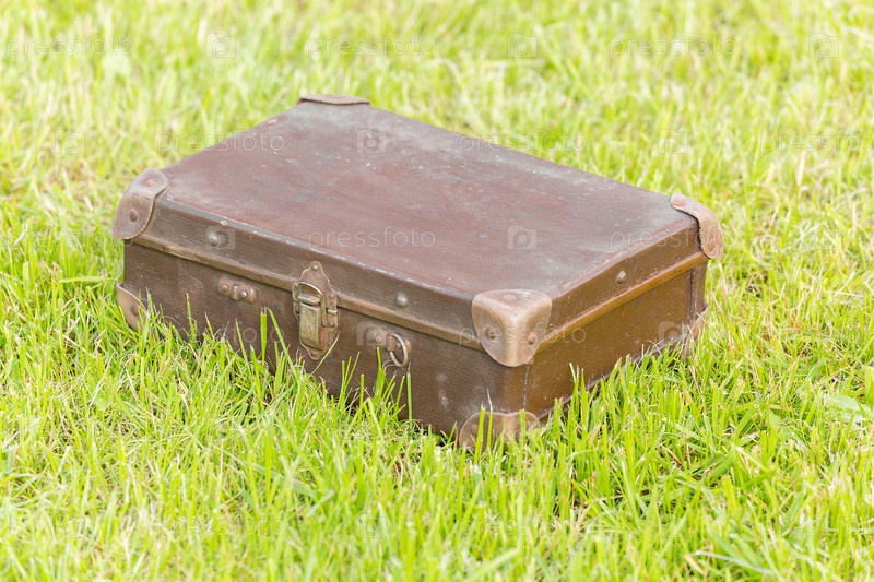 Старый чемодан на траве