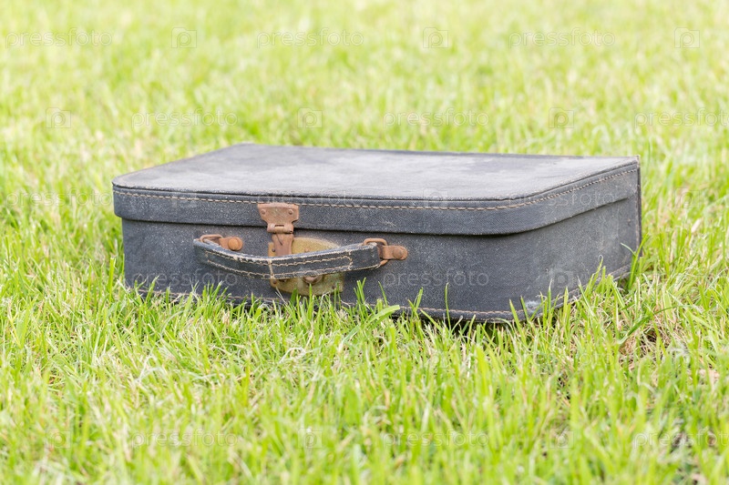 Старый чемодан на траве