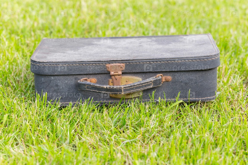 Старый чемодан на траве