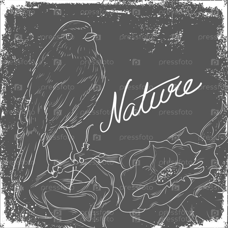 Векторная иллюстрация птиц, сидя на ветке с цветами