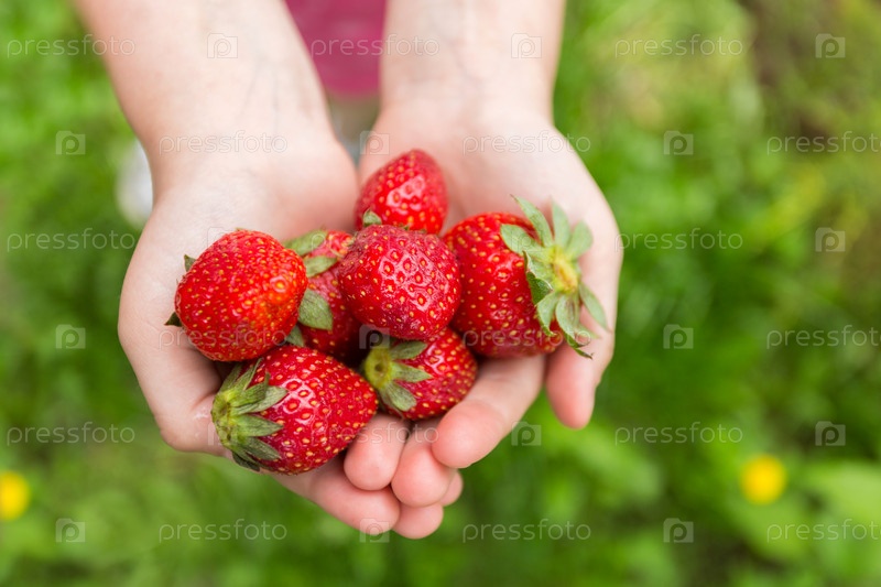 Красная клубника в руках