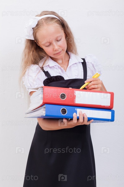 Школьница с папками