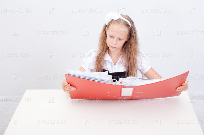 Школьница с папками
