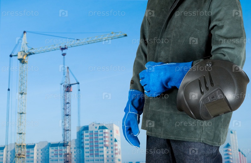 Сварщик на фоне стройки