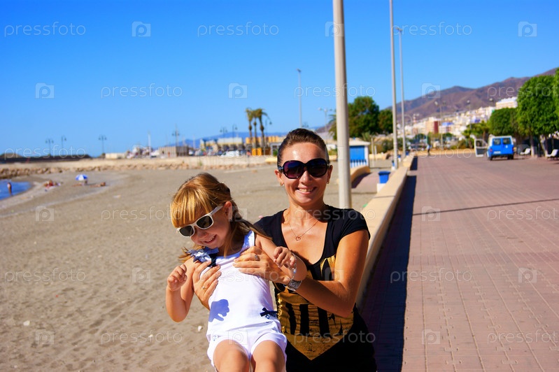 Маленькая девочка с мамой на открытом воздухе