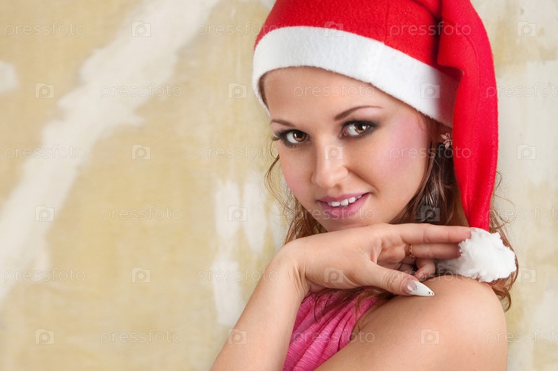 Портрет молодой красивой женщины в новогодней шапке