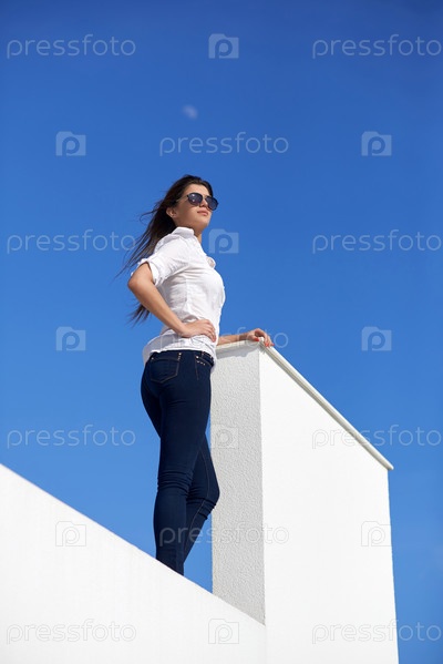 Женщина перед современным домом