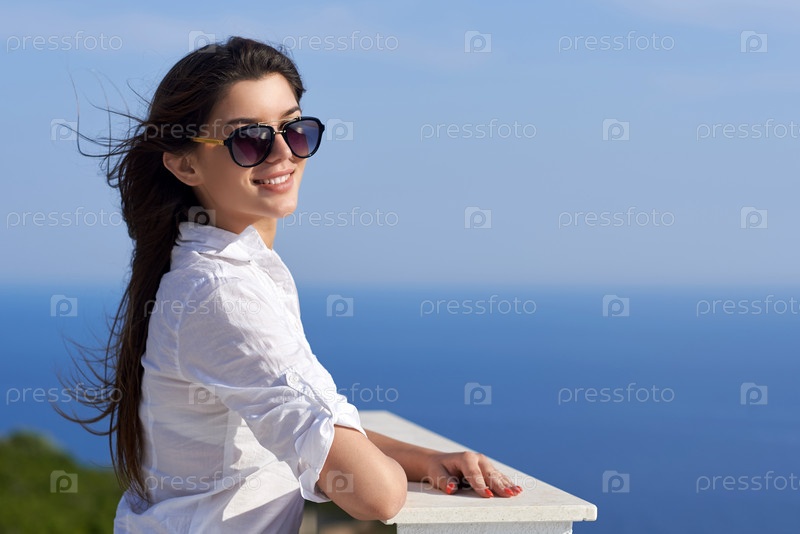Женщина перед современным домом