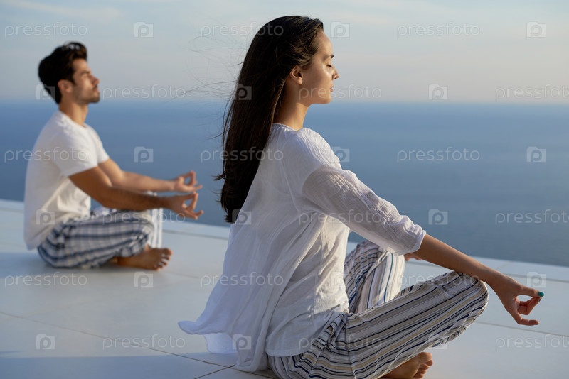 Молодая пара упражнений йоги