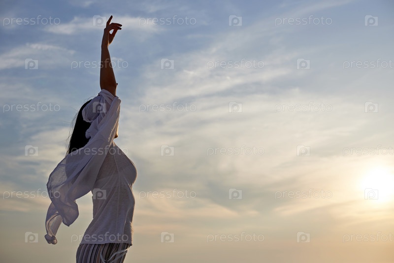 Молодая женщина наслаждаться закатом