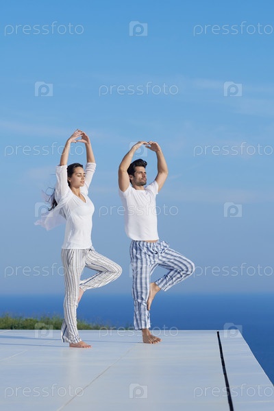 Молодая пара упражнений йоги