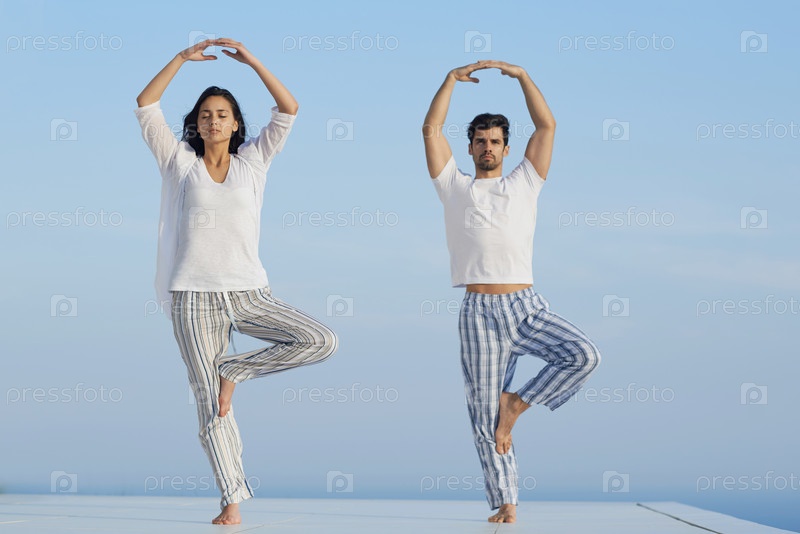 Молодая пара упражнений йоги