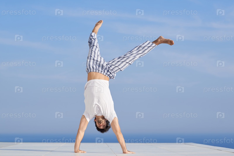 Молодой человек практикующих йогу