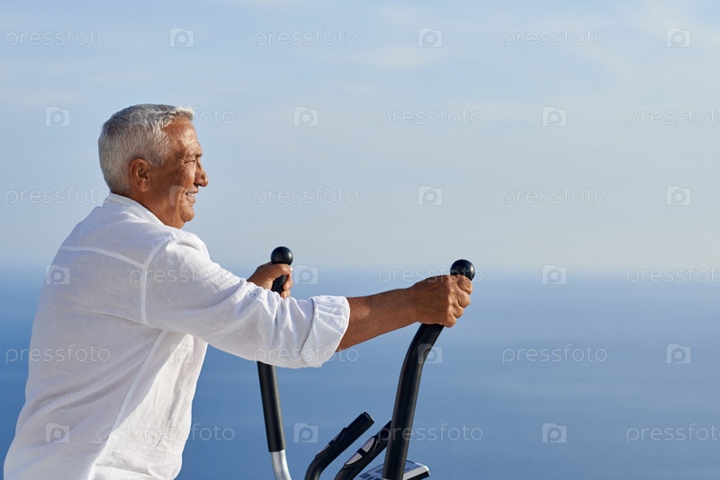 Здоровый человек старший, тренируется