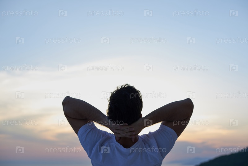 Расслабленной молодого человека у себя дома, на балконе