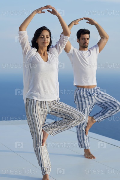 Молодая пара упражнений йоги
