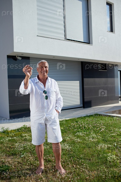 Старший мужчина напротив современного дома