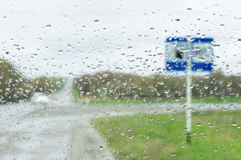 Капли дождя на лобовом стекле автомобиля