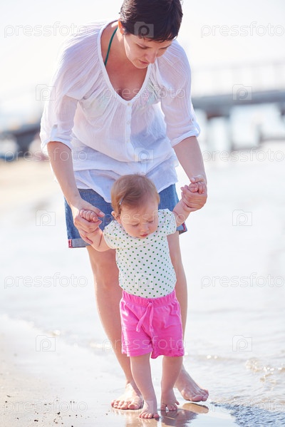 Мама и ребенок на пляже