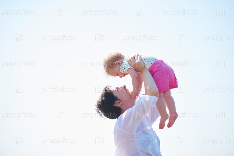 Мама и ребенок на пляже