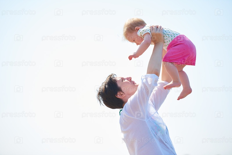 Мама и ребенок на пляже
