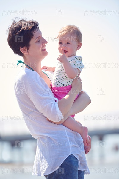 Мама и ребенок на пляже