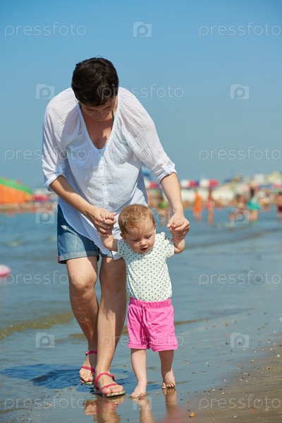 Мама и ребенок на пляже