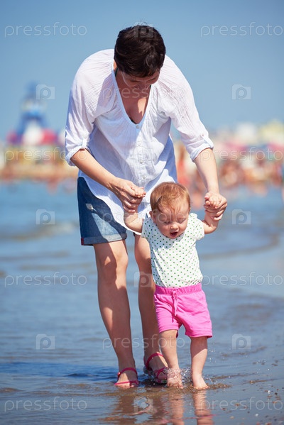 Мама и ребенок на пляже
