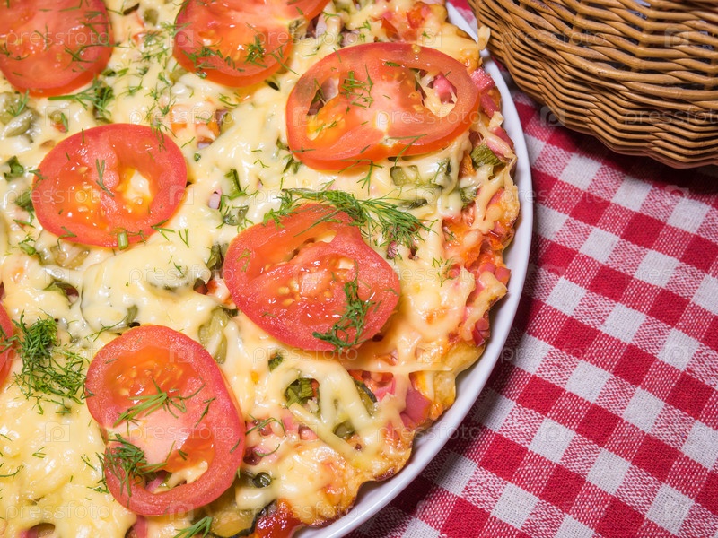 Мясная пицца с помидорами