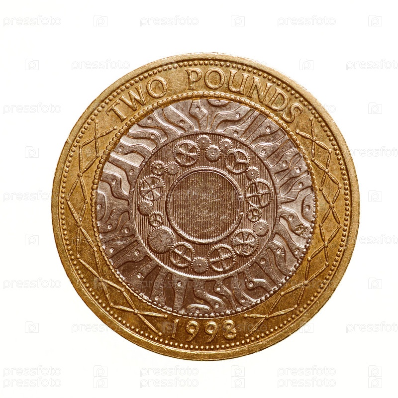 2 фунта валюты Соединенного Королевства, изолированные на белом фоне